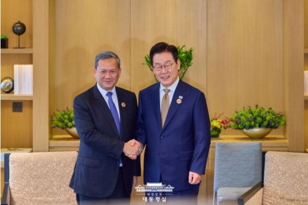 이재명 대통령은 27일 오전 제47차 아세안 정상회의 참석을 계기로 ‘훈 마넷’ 캄보디아 총리와 취임 후 첫 양자회담을 가졌다.
