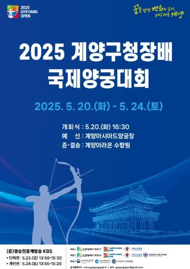 인천광역시 계양구는 지난해까지 전국 대회로 개최해 온 ‘계양구청장배 양궁대회’를 올해부터 국제 규모로 확대해, ‘2025 계양구청장배 국제양궁대회(Gyeyang Open)’로 새롭게 개최한다.
