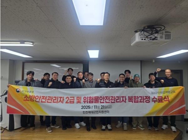 국가보훈부 인천보훈지청 제대군인지원센터는 11월 21일 중·장기복무 제대(예정)군인 대상으로 한국인성평생교육원에서 진행한'소방안전관리자 2급 및 위험물안전관리자 복합과정 취득'수료식을 가졌다.