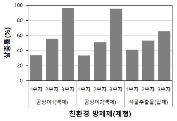 이에 국립산림과학원은 러브버그가 대발생했던 백련산과 계양산을 대상으로 유충의 서식 분포를 조사하고, 밀도 조절을 위한 친환경 방제제의 실내 방제 효과를 검증했다.