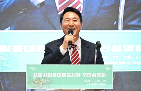 오세훈 서울시장은 26일 오전 10시 30분 서울시립대 대강당에서 열린 ‘서울시립도서관(동대문) 설명회’에 참석해 주민 의견을 청취하고 차질없는 사업추진을 약속했다.