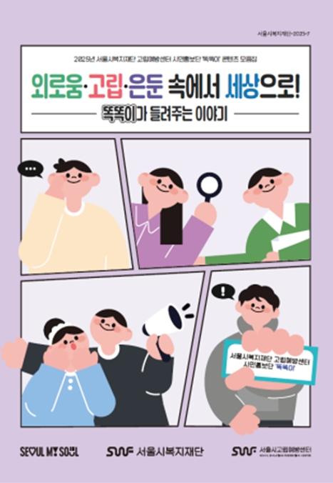 서울시복지재단 고립예방센터는 2025년 시민홍보단 ‘똑똑이’가 제작한 콘텐츠들을 엮은 '외로움·고립·은둔 속에서 세상으로! 똑똑이가 들려주는 이야기' 모음집을 발간했다고 밝혔다.
