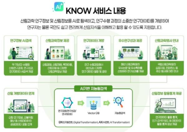 산림청 국립산림과학원은 AI 시대의 ‘열린 산림과학’ 구현을 위해 원천데이터를 개방하고, 국민 누구나 손쉽게 활용할 수 있도록 AI 지능형 산림과학지식서비스를 시작한다고 밝혔다.