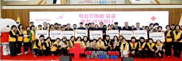 인천광역시는 12월 1일 인천시청 중앙홀에서 열린‘점프(JUMP) 2026 적십자 인천’ 행사에서 대한적십자사 인천지사(회장 조의영)에 특별회비 1,000만 원을 전달하며 지역사회 나눔 문화 확산에 앞장섰다.