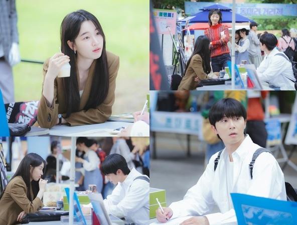 연극 동아리 지리멸렬을 통해 서로를 알게 되는 만큼 선배 박세영(이주영 분)과 함께 화기애애함 가득한 동아리 모집 파티 현장에 마주 앉아 있는 두 사람에게서는 풋풋한 기류가 느껴지고 있다.