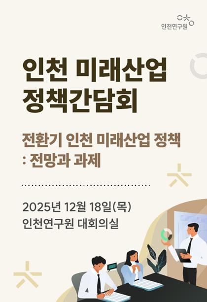 인천연구원은 2025년 12월 18일 오전 10시, 인천연구원 대회의실에서 '인천 미래산업 정책간담회'를 개최한다.