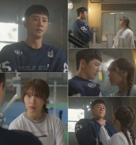 내일 14일(수) 밤 9시 50분 방송되는 KBS 2TV 수목드라마 ‘24시 헬스클럽’(연출 박준수, 최연수 / 극본 김지수 / 제작 CJ ENM STUDIOS, 본팩토리, 몬스터유니온, 키이스트) 5회에서는 헬스장 관장 도현중(이준영 분)이 회원 이미란(정은지 분)의 심기를 건드리는 말을 건넸다가 멱살까지 잡히는 웃픈(?) 상황이 벌어진다.