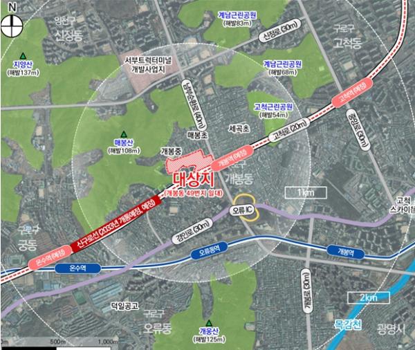 개봉동 49번지 일대가 주택정비형 재개발 확정으로 미래 역세권 인근 학교가 안전한 통학로로 연결되는 1,364세대 열린단지로 탈바꿈한다.