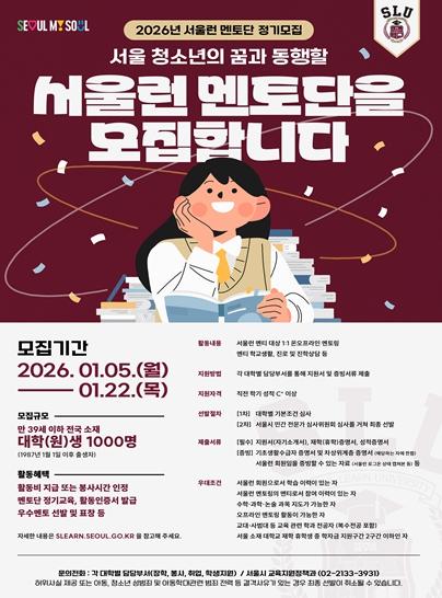 정진우 서울시 평생교육국장은 “서울런 멘토링은 멘티의 학습과 성장을 돕는 동시에 멘토 스스로도 사회에 기여하며 역량을 키우는 기회”라며, “올해 멘토단 규모와 운영이 확대되는 만큼 이번 멘토단 모집에 배움과 나눔의 선순환에 동참할 대학생들의 많은 지원을 바란다”라고 말했다.