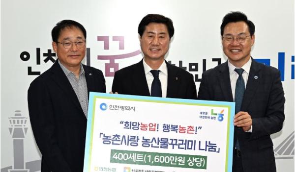 기부된 농산물 꾸러미는 총 400세트(1,600만 원 상당)로, 쌀(1kg), 감자(900g), 고구마(800g) 등 총 11개 품목으로 구성돼 있으며, 해당 꾸러미는 인천광역시기부식품등지원센터를 통해 지역 내 저소득층과 사회복지시설에 전달될 예정이다.