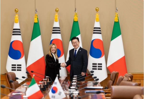 또 "인적 교류가 모든 협력의 중심"이라며 "정치 대화를 제도화하고 투자와 무역, 소프트파워 분야 협력을 확대해 나가길 바란다"고 밝혔다. 멜로니 총리는 "이재명 대통령의 실용적 접근 방식을 높이 평가한다"며 "올해 대통령의 이탈리아 국빈 방문을 기대한다"고 말했다.