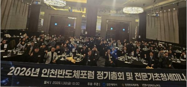 인천광역시는 지난 1월 30일 쉐라톤그랜드 인천호텔에서 ‘2026년 인천반도체포럼 정기총회 및 전문가 초청 세미나’를 개최했다고 밝혔다.