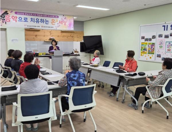 합천군 자원봉사센터는 지난 13일 보건소 치매프로그램실에서 ‘음악으로 치유하는 온(溫) 세상’을 운영했다.