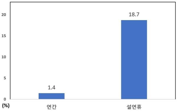 최근 10년(2016~2025년)간의 산불 통계자료를 분석한 결과, 설 연휴 기간에만 평균 8.5건의 산불이 발생했다. 특히 성묘객 실화로 인한 산불 비율은 연평균 1.4% 수준이지만, 설 연휴 기간에는 18.7%까지 증가했다. 전체 성묘객 실화 산불의 20.5%가 이 짧은 설 연휴 기간에 집중되고 있어, 성묘객들의 각별한 주의가 요구되는 상황이다.