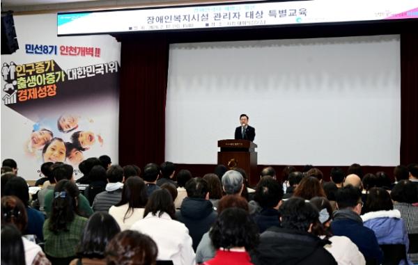 인천광역시는 2월 12일 시청 대회의실에서 장애인복지시설 관리자 250여 명을 대상으로‘장애인학대 예방’을 위한'장애인복지시설 관리자 대상 특별교육'을 실시했다고 밝혔다.