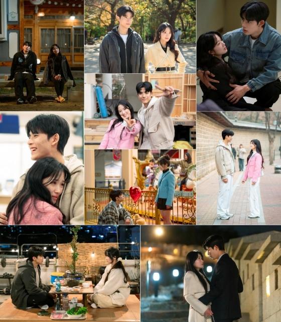 이와 함께 촬영장 뒷모습을 포착한 비하인드 사진도 눈길을 끈다. 강시열을 향한 은호의 진심을 확인할 수 있었던 보육원 화재 구조 현장과 그 이후 설레는 변화가 시청자들의 과몰입을 유발했던 장면. 김혜윤과 로몬이 검은 그을음 분장을 한 얼굴에도 밝은 미소로 현장 분위기를 환하게 밝힌다. 특히 나란히 서서 카메라를 향해 장난스러운 브이 포즈를 취하는가 하면, 눈만 마주쳐도 저절로 웃음이 새어 나오는 두 사람의 모습은 회를 거듭하며 더욱 물오른 케미스트리를 보여준다.