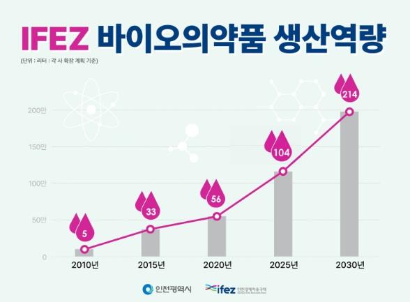 송도 바이오클러스터의 생산 능력은 2010년 5만 리터에 이어 2015년 33만 리터, 2020년 56만 리터로 급격한 증가세를 이어왔다.