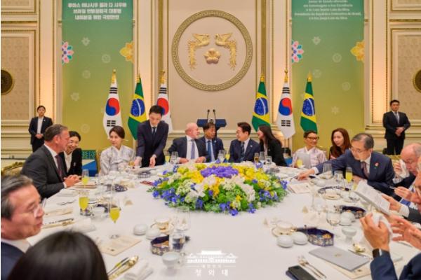또한 삼성, LG, 현대 자동차를 언급하면서 “자랑스러운 우리 기업들도 양국 관계의 핵심 축”이라면서 “이번 정상회담을 계기로 한국과 브라질이 국제 사회와 다자무대에서 인류 보편의 과제 해결에 함께 기여하는 모범적인 동반자로 거듭나게 될 것”이라고 강조했다.