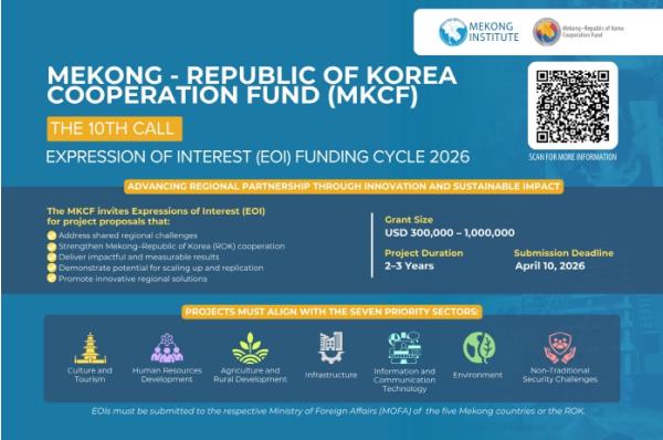 외교부는 3월 6일부터 4월 10일까지 제10차 한-메콩 협력기금(MKCF, Mekong-Korea Cooperation Fund) 사업 선정 공모를 진행한다.