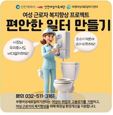 참여 기업은 여성 근로자 비율(30% 이상 또는 50인 미만), 화장실 노후도, 위생 상태, 기업의 참여 의지, 새일센터와의 협력 여부 등을 종합적으로 고려해 선발할 계획이다.