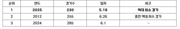 종전 400만 관중 달성까지 소요됐던 역대 최소 경기는 2012 시즌의 255경기였다. 하지만 오늘 230경기만에 400만 관중을 달성함에 따라 종전 기록을 25경기 단축했고, 최다 관중 신기록을 달성했던 지난 해의 285경기와 비교해도 55경기가 앞당겨졌다.
