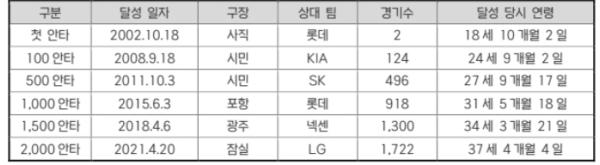 현재 최형우는 KBO 리그 통산 2루타와 타점 부문 1위를 달리고 있으며, 루타 부문에서도 최정(S)과 치열한 선두 경쟁을 벌이고 있다. 만약 2,500안타 기록까지 달성한다면, KBO 리그 역사에 또 하나의 금자탑을 세우게 된다.