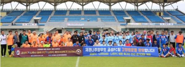 재경나주향우회 축구단인 ‘금성FC’ 황상현 단장은 “오랜만에 고향을 방문하여 지역민과 유대감을 느낄 수 있는 경기를 펼칠 수 있어서 뜻깊게 생각한다”며 경기를 함께 한 ‘나주 5060’ 축구단, ‘나주FC위민’ 축구단에 감사의 인사를 전했다.