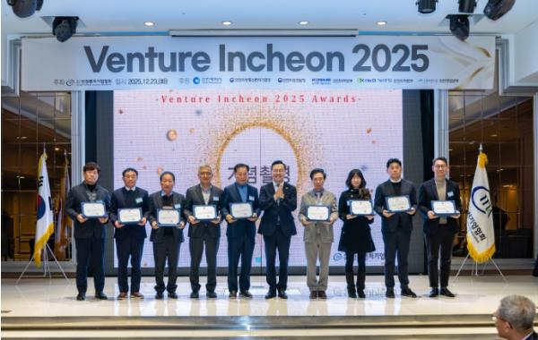 인천광역시와 인천벤처기업협회는 12월 23일 송도 라마다호텔에서 ‘Venture Incheon 2025 대회’를 개최하고, 지역의 우수 벤처기업인들을 격려했다.