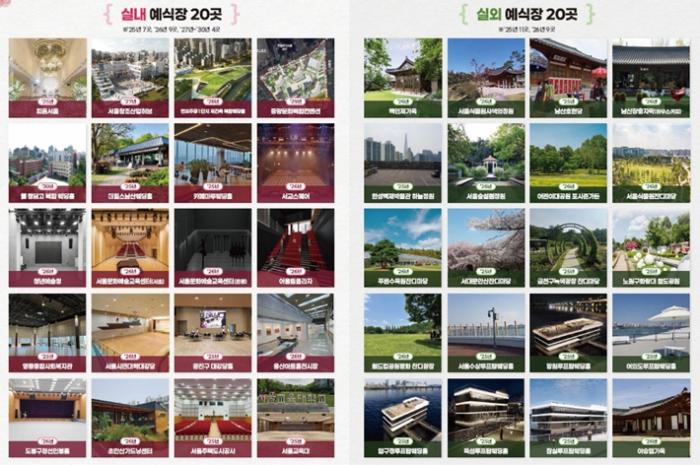 시는 현재 ‘북서울꿈의숲’, ‘시립대 자작마루’ 등 서울의 정취를 고스란히 느낄 수 있는 25곳의 공공예식장을 운영 중이다.