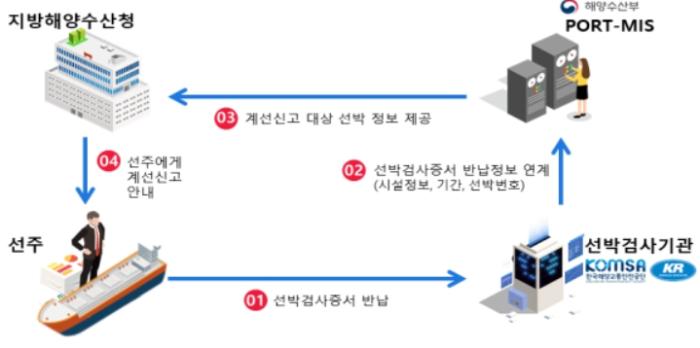• 7.1.(화)부터 선주가 선박검사증서를 반납하는 즉시 지방해양수산청에서 선주에게 계선신고 절차를 안내하도록 관리체계 개선