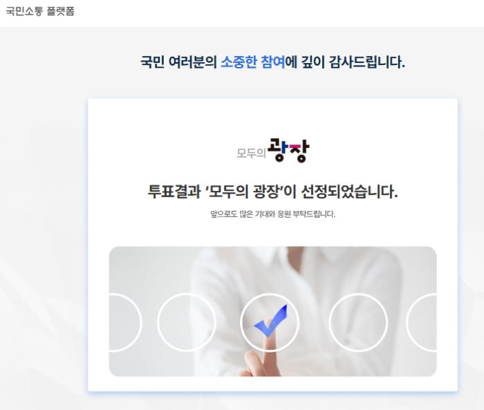 대통령 직속 국정기획위원회(위원장 이한주)는 국민의 목소리를 국정에 반영하기 위해 지난 6월 18일부터 운영 중인 온라인 국민소통 플랫폼(가칭'이재명 대통령에게 바란다')의 정식 명칭이 ‘모두의 광장’으로 확정됐다고 25일 밝혔다.