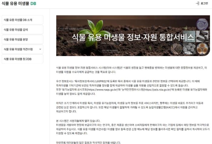 • 1일부터 ‘식물 유용 미생물 정보‧자원 통합서비스’ 시작