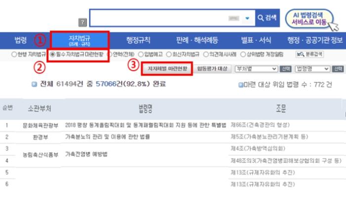법제처는 2015년 9월부터 2025년 5월까지의 기간 동안 지방자치단체가 마련한 ‘필수 자치법규’의 현황을 점검해 그 결과를 국가법령정보센터에 게시했다.
