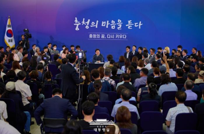 이 대통령은 이날 대전에서 열린 '충청에서 듣다, 충청 타운홀 미팅'에 참석해 소상공인과 과학기술계 종사자 등 지역 주민들의 의견을 경청했다.
