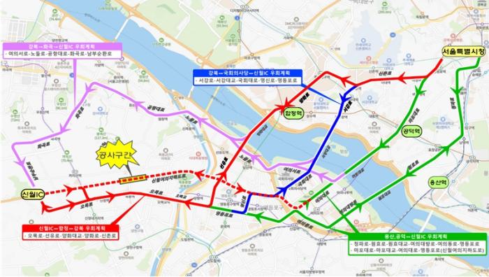시는 공사기간 중 혼잡이 예상되는 만큼, 국회대로를 통과하는 차량은 남부순환로, 오목로, 영등포로 등 주변 도로를 적극 우회해 줄 것을 당부했다. 특히 신월IC에서 강북 방향으로 진입하려는 차량은 ▲신월여의지하도로를 이용하거나 ▲오목로 또는 영등포로를 통해 양화대교나 서강대교를 경유하는 우회로를 활용하면 된다.