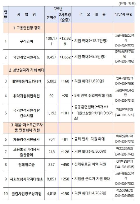 • 2025년 고용노동부 소관 새 정부 추가경정예산은 정부가 제출한 1조 5,837억원 규모로 확정됐습니다.