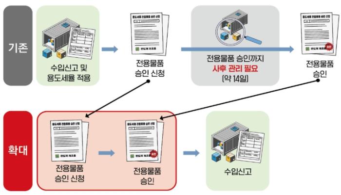 앞으로는 사전심사 제도 도입으로 수입신고 이전에 미리 전용물품 승인을 받을 수 있어, 기업의 사후관리 부담을 해소하는데 크게 기여할 것으로 기대된다.