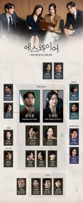 ‘에스콰이어’ 제작진은 “율림 송무팀을 중심으로 얽히고설킨 인연과 서로 다른 신념을 지닌 캐릭터들이 펼쳐낼 다채로운 이야기가 시청자들의 현실 공감을 저격할 것”이라며 “법정 안팎에서 얽히고 부딪히며 성장해 나가는 이들의 관계 흐름을 함께 지켜봐 달라”고 전했다.