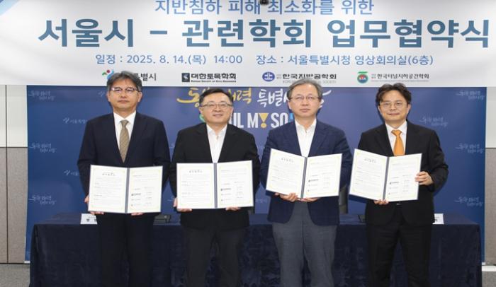 서울시는 14일 오후 2시 서울시청에서 지반 안전 관련 전문 학회 3곳과 ‘지반침하 예방 및 대응을 위한 업무협약’을 체결했다.