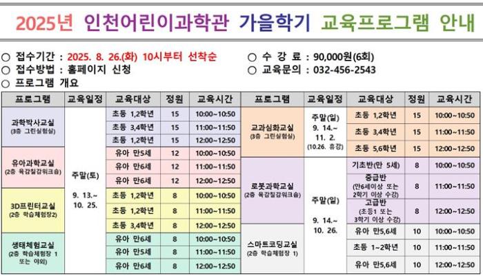 상세 교육 과정은 인천어린이과학관 홈페이지 공지사항에서 확인할 수 있다.