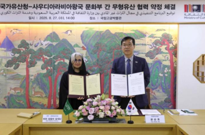 약정식에는 윤순호 국가유산청 무형유산국장과 마하 압둘라 알세난 사우디 문화부 연구·문화유산국장 등 주요 관계자가 참석했다.