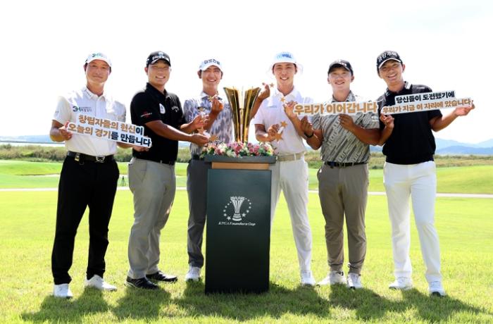 선수들은 골프존카운티 영암45 클럽하우스 앞에서 창립회원 12인을 기념하는 12개의 별을 들고 대회의 성공적인 개최를 기원했다.