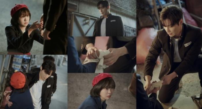 그 무심한 상남자의 모습만으로도 영례가 반할 수밖에 없었다. 그런데 이어진 장면은 심장 박동수마저 높였다. 주저앉은 영례에게 다가온 재필은 낮고 깊은 중저음으로 “괜찮아요?”라고 묻더니, 다친 손을 발견하고는 망설임 없이 수건을 꺼내 감싸주며 세심한 배려를 드러냈다.