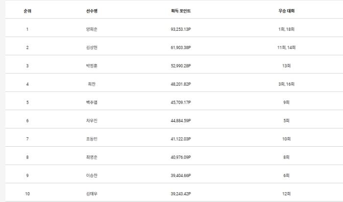 통합 포인트 1위는 결정됐다. 총 93,253,13포인트를 쌓은 양희준(25)이다.