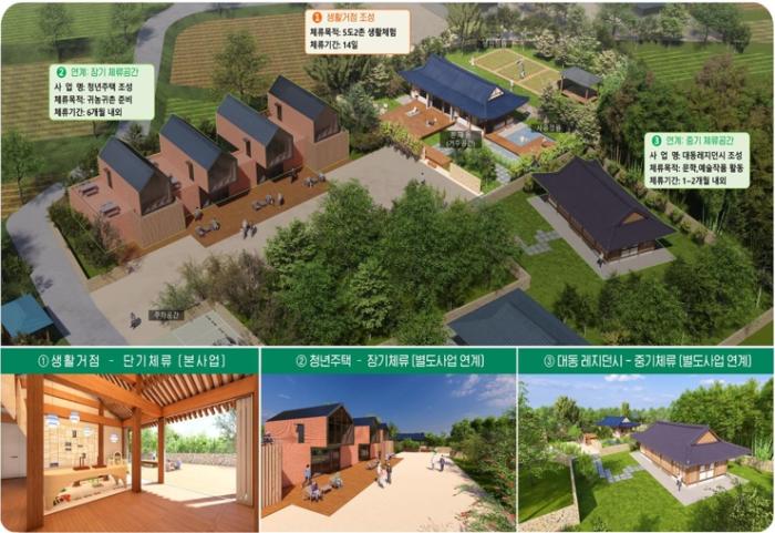 주 사업은 두 지역살이 체험 방문객을 대상으로 거주 편의를 제공하기 위해 대동면 월송리 401-1번지 일원에 소재한 65년의 전통가옥을 현대적으로 리모델링하는 것이다. 2026년까지 총 20억 원(특교세 50%·지방비 50%)이 투입된다.