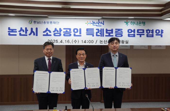 4월 16일 논산시청에서 진행된 협약식에는 백성현 논산시장, 이동열 하나은행 충청영업그룹 부행장, 조소행 충남신보 이사장이 참석하여 논산시 소상공인들의 경영 안정과 지역 경제 활성화에 뜻을 모았다.