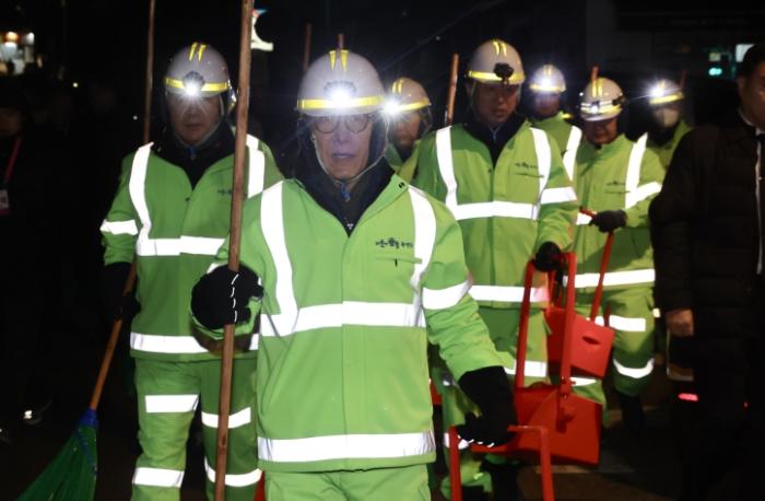 김민석 국무총리는 12월 26일 6시 30분경, 서울특별시 관악구 서원동 환경공무관 업무공간을 방문해 직접 거리를 청소하고 담소를 나누며 격려하는 시간을 가졌다.