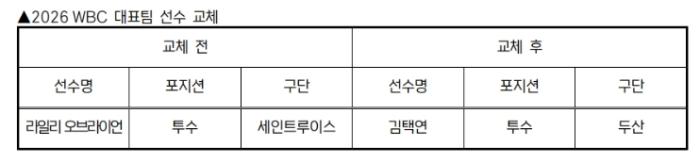 • KBO, 2026 WBC 대표팀 선수 교체 승인 요청