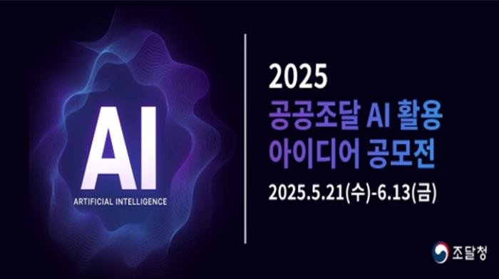 • 조달청은 공공조달 분야에 인공지능(AI)을 활용하여 조달 업무나 일하는 방식을 개선할 수 있는 아이디어를 발굴하기 위해 ‘2025 공공조달 AI 활용 아이디어 공모전’을 개최한다.